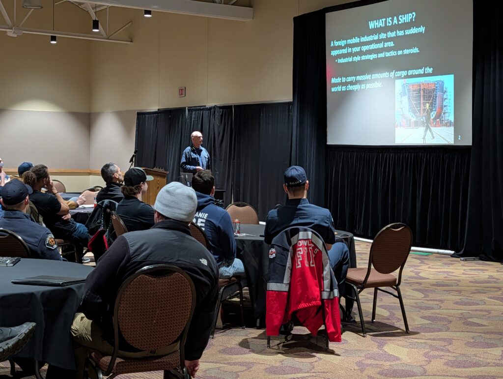 In the afternoon attendees were split into groups and participated in activities designed to familiarize participants with how to understand vessel fire control plans for the various different vessel types that call at ports and facilities in the area.